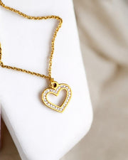 Golden Love Sparkle Heart Pendant Necklace